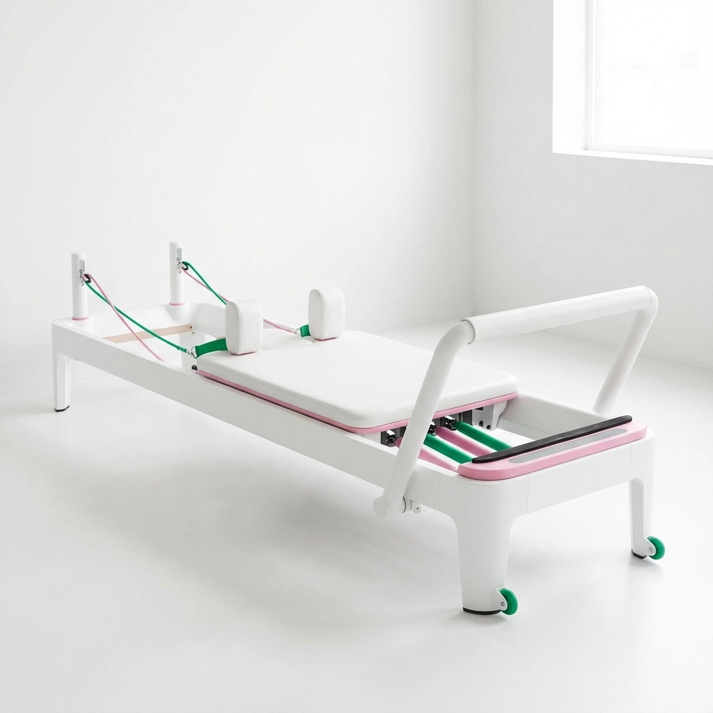 The reformer consists of a sliding carriage (think of it as a moving platform) that glides along rails within a sturdy frame. This carriage is where you'll lie, sit, kneel, or stand during exercises. What makes it special is the spring system: different colored springs provide varying levels of resistance that can be adjusted based on your strength and experience level.